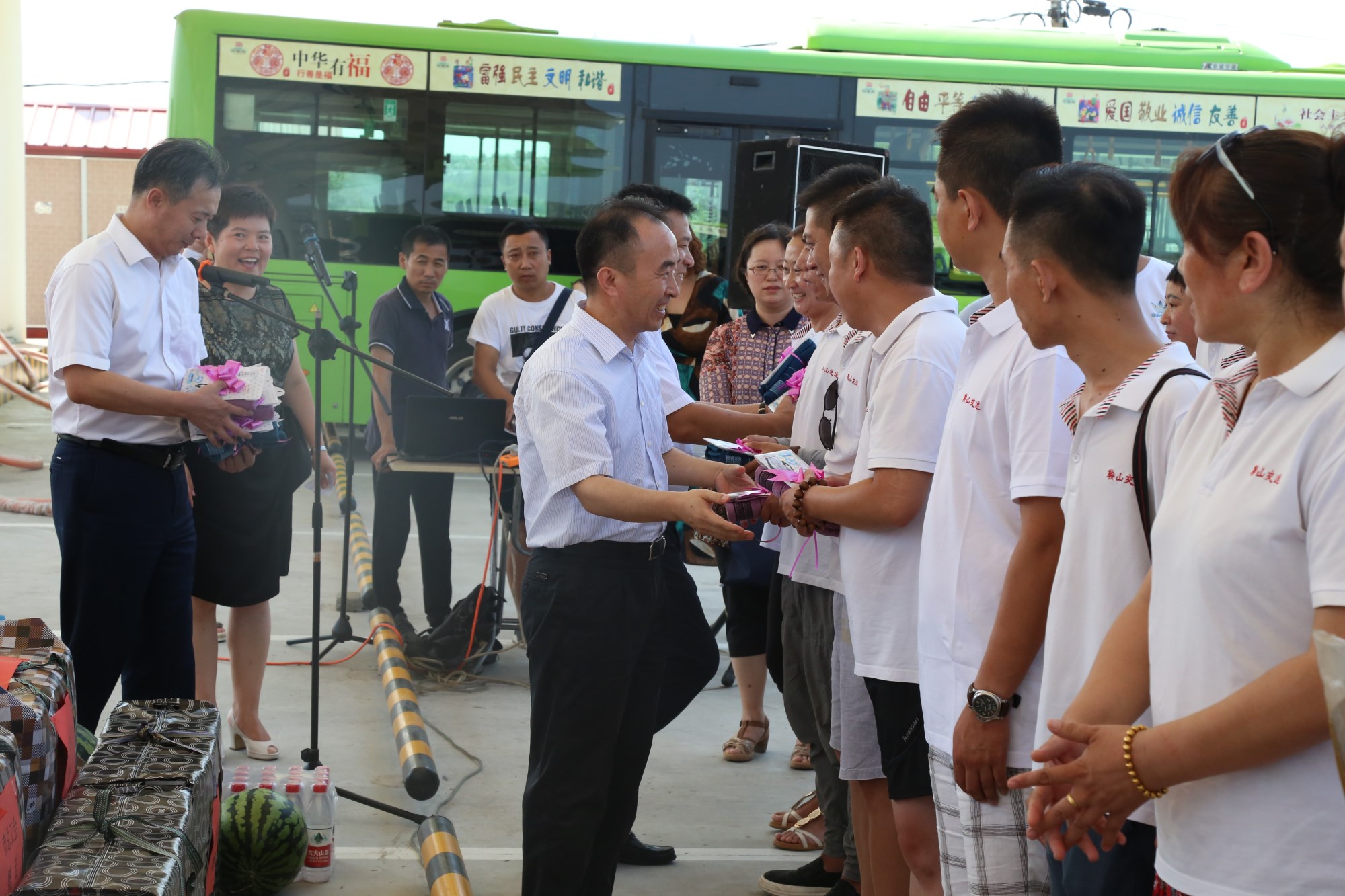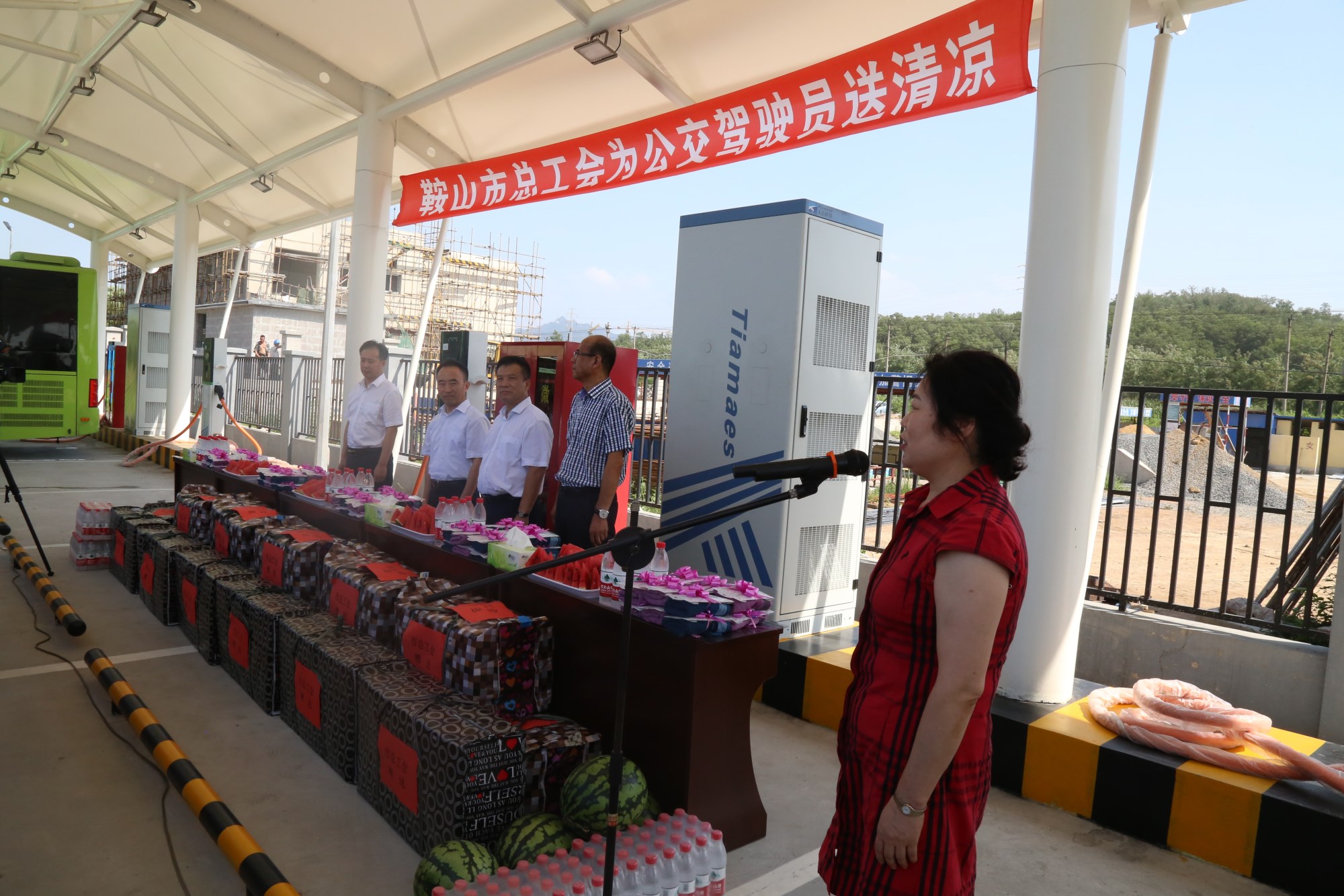 2018年8月1日下午,鞍山市總工會(huì)在交運(yùn)集團(tuán)第二汽車(chē)分公司216路終點(diǎn)站舉行了為公交一線駕駛員送清涼活動(dòng)。鞍山市人大常委會(huì)副主任、市總工會(huì)主席解永孚;市總工會(huì)副主席李展程;市國(guó)資委黨委書(shū)記、主任顧洪新等領(lǐng)導(dǎo)來(lái)到216路調(diào)度室看望了交運(yùn)集團(tuán)一線駕駛員,為他們送去夏日里的清涼與工會(huì)組織的慰問(wèn)。交運(yùn)集團(tuán)黨委書(shū)記、董事長(zhǎng)羅玉艷;總經(jīng)理王春江;黨委副書(shū)記、紀(jì)委書(shū)記、工會(huì)主席金秀石出席了活動(dòng)。活動(dòng)中,交運(yùn)集團(tuán)黨委書(shū)記、董事長(zhǎng)羅玉艷向市總工會(huì)領(lǐng)導(dǎo)介紹了企業(yè)生產(chǎn)運(yùn)營(yíng)情況,并代表集團(tuán)職工向市總工會(huì)表示感謝。隨后,市總工會(huì)主席解永孚代表市總工會(huì)對(duì)高溫酷暑中仍堅(jiān)守崗位、辛勤工作的交運(yùn)一線職工致以親切的問(wèn)候,希望交運(yùn)集團(tuán)廣大職工繼續(xù)發(fā)揚(yáng)艱苦奮斗、愛(ài)崗敬業(yè)精神,注意防暑和行車(chē)安全,以更好的狀態(tài)投入到工作中服務(wù)好市民乘客,并將市總工會(huì)撥付的2萬(wàn)元慰問(wèn)金交到交運(yùn)集團(tuán)董事長(zhǎng)手中。第二汽車(chē)分公司2路線駕駛員謝金紅在活動(dòng)中代表一線駕駛員作了表態(tài)發(fā)言。最后,各級(jí)領(lǐng)導(dǎo)在現(xiàn)場(chǎng)親手將交運(yùn)集團(tuán)工會(huì)為一線職工準(zhǔn)備了冰袖、毛巾、西瓜、冰鎮(zhèn)礦泉水等慰問(wèn)物資發(fā)到職工手中。